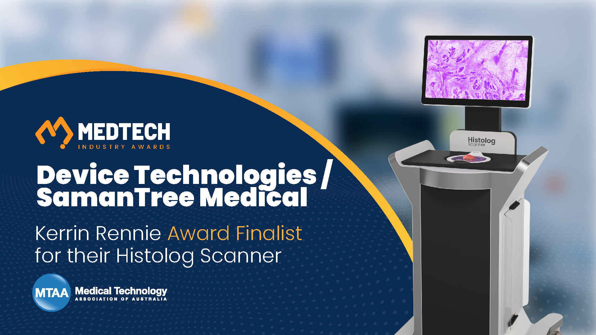 SamanTree Medical’s Histolog Scanner (distributed by Device Technologies) is a groundbreaking medical device that allows for the real-time detection of cancer cells during surgery, thereby enhancing precision and reducing the necessity for repeat procedures.